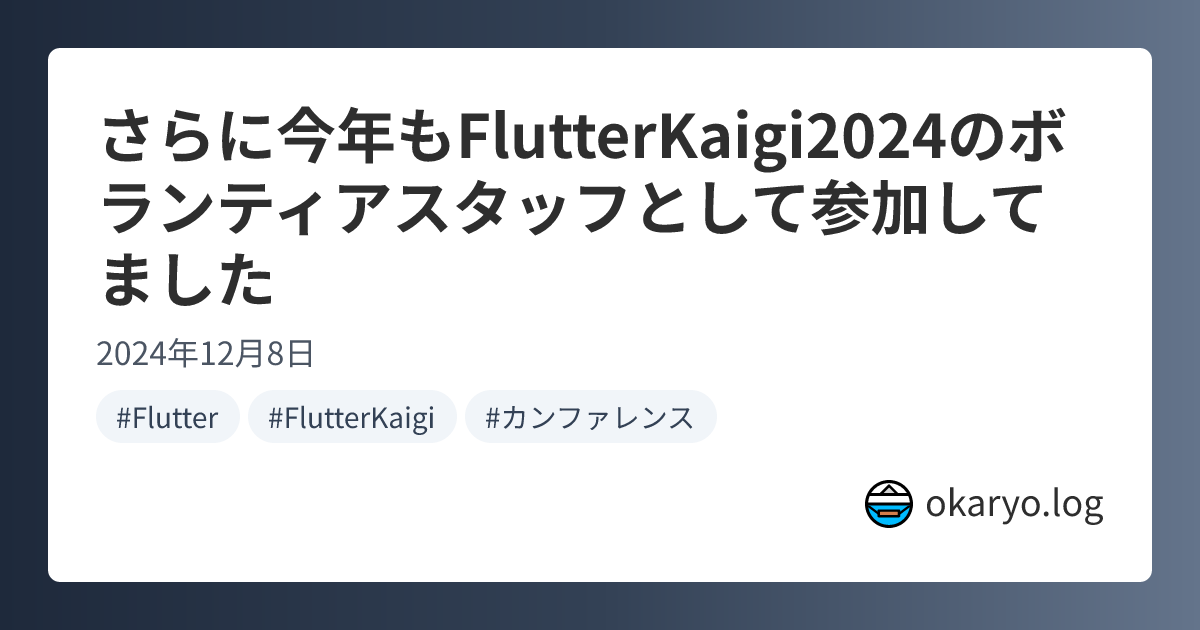 自分はFlutterKaigi2022からスタッフとして参加して、4年目となる今年もスタッフとして参加した。ブログに書くまでがカンファレンスと言うので、今年も忘れないうちに記録を残しておく。昨年の体験記はこちら。